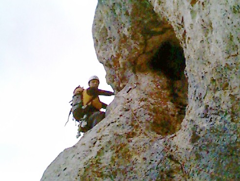 Klettern an der Kampenwand, Westgipfel Südwand, 3. Mai 2003