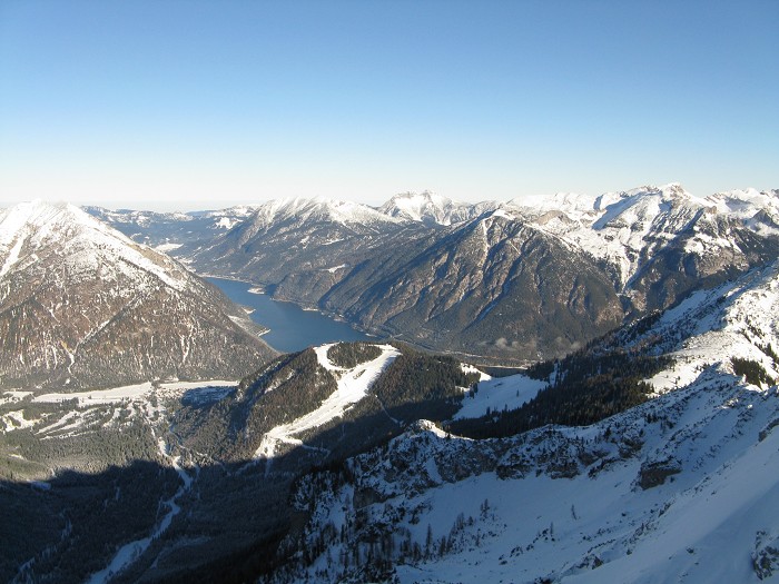 Unten der Achensee, im Vordergrund das Skigebiet um den Zwölferkopf.